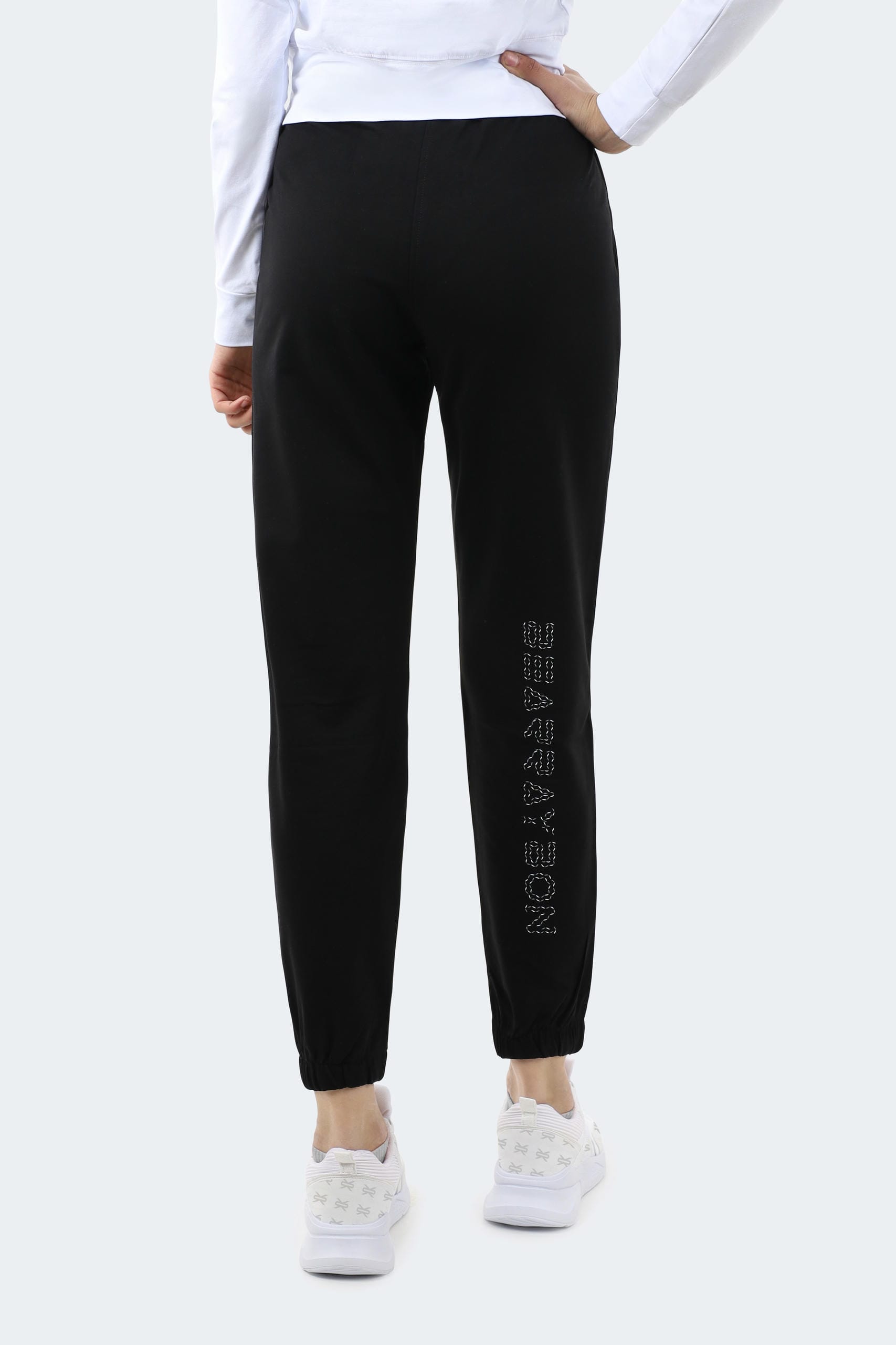 Graphic Detail: Stylish vertical lettering print on the back lower leg.
