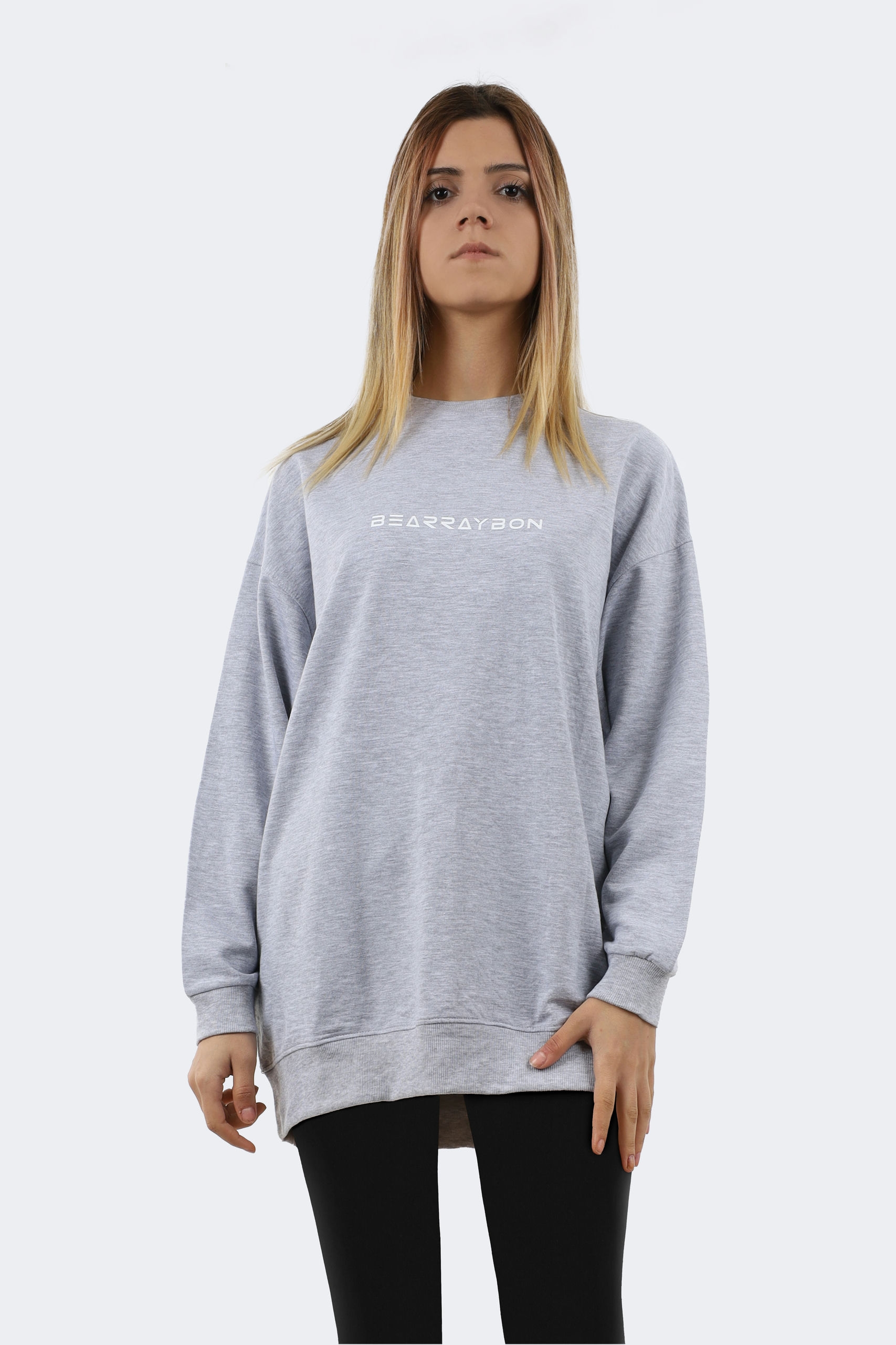 This stylish oversized tunic from Bearraybon effortlessly combines comfort and fashion. Crafted from soft, breathable fabric, this tunic has a relaxed fit for a modern look. The minimalist design adds a sophisticated touch by showcasing the Bearraybon logo in a bold white font across the chest. The light grey color makes it versatile. Pair it with leggings or jeans for an effortlessly stylish outfit. Suitable for all seasons, this sweatshirt is a must-have for those who like to combine comfort with style.