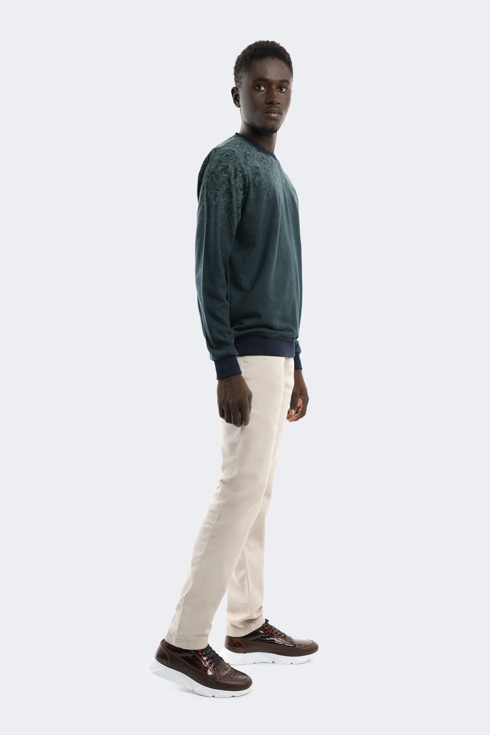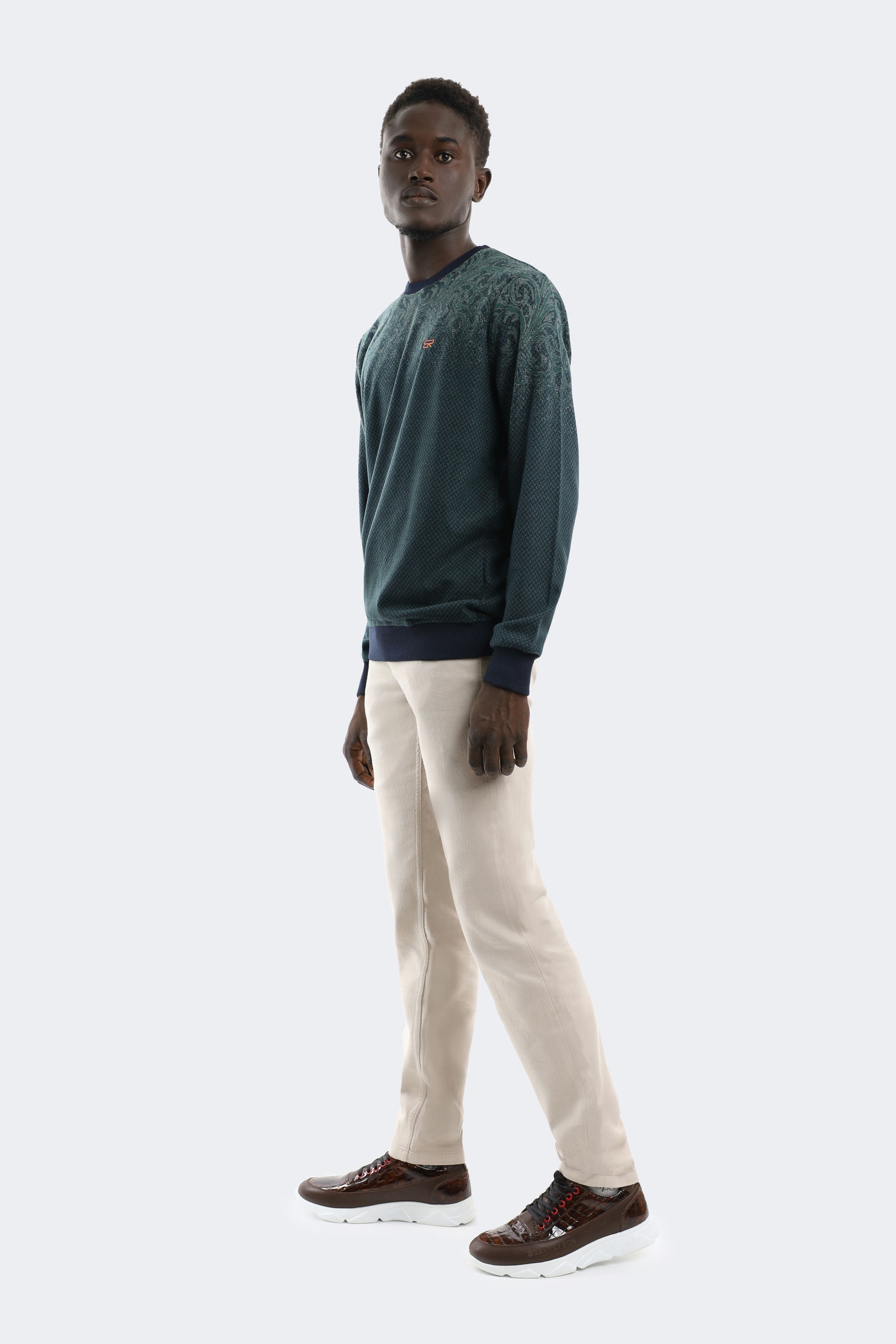 A modern reflection of timeless elegance, this elegant sweatshirt offers a sophisticated interpretation of classic patterns. The geometric patterns embroidered with fine details bring comfort and aesthetics together, while its soft texture makes it a perfect choice for all seasons. Its minimalist design provides comfort in both city life and weekend getaways without compromising your elegance.
