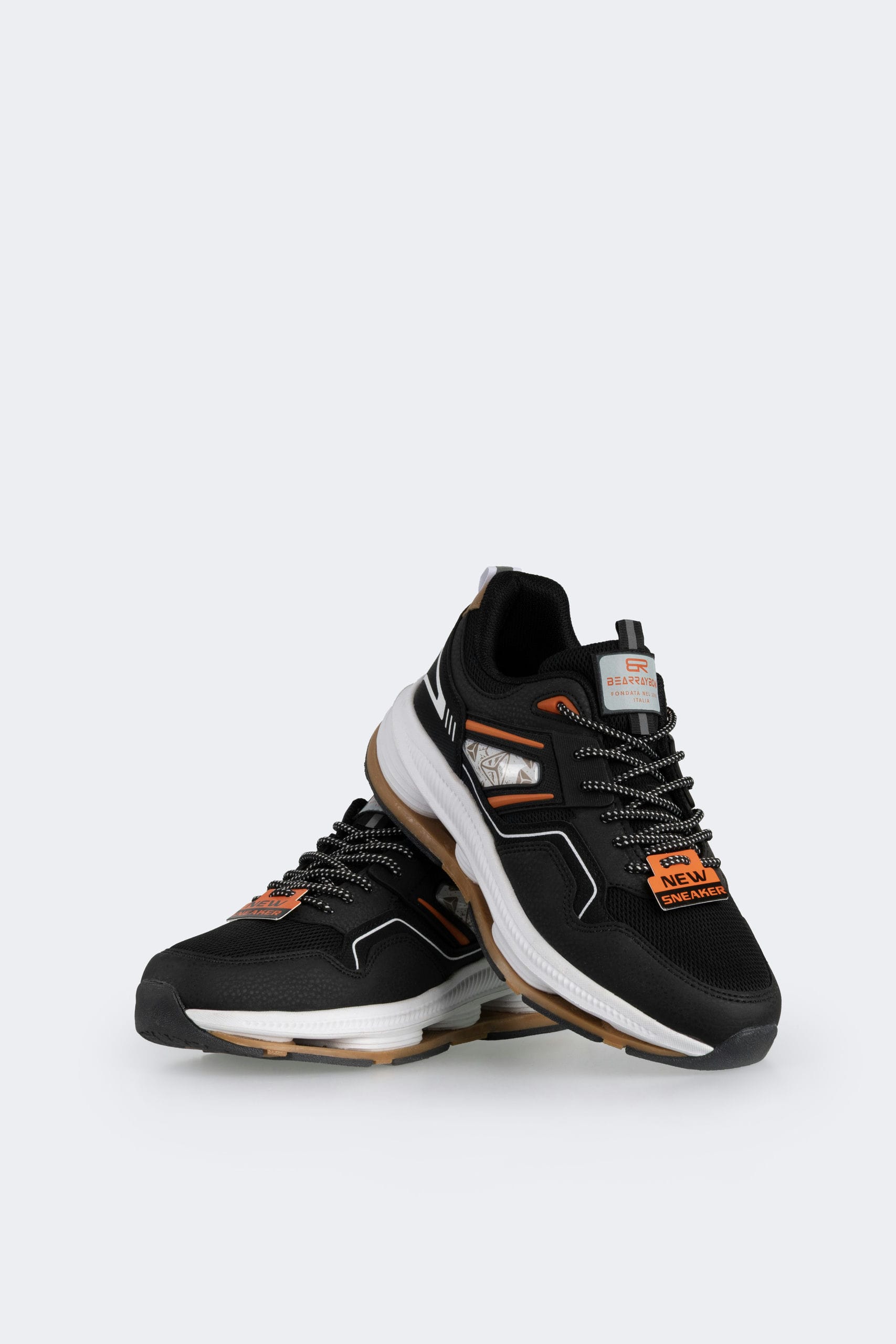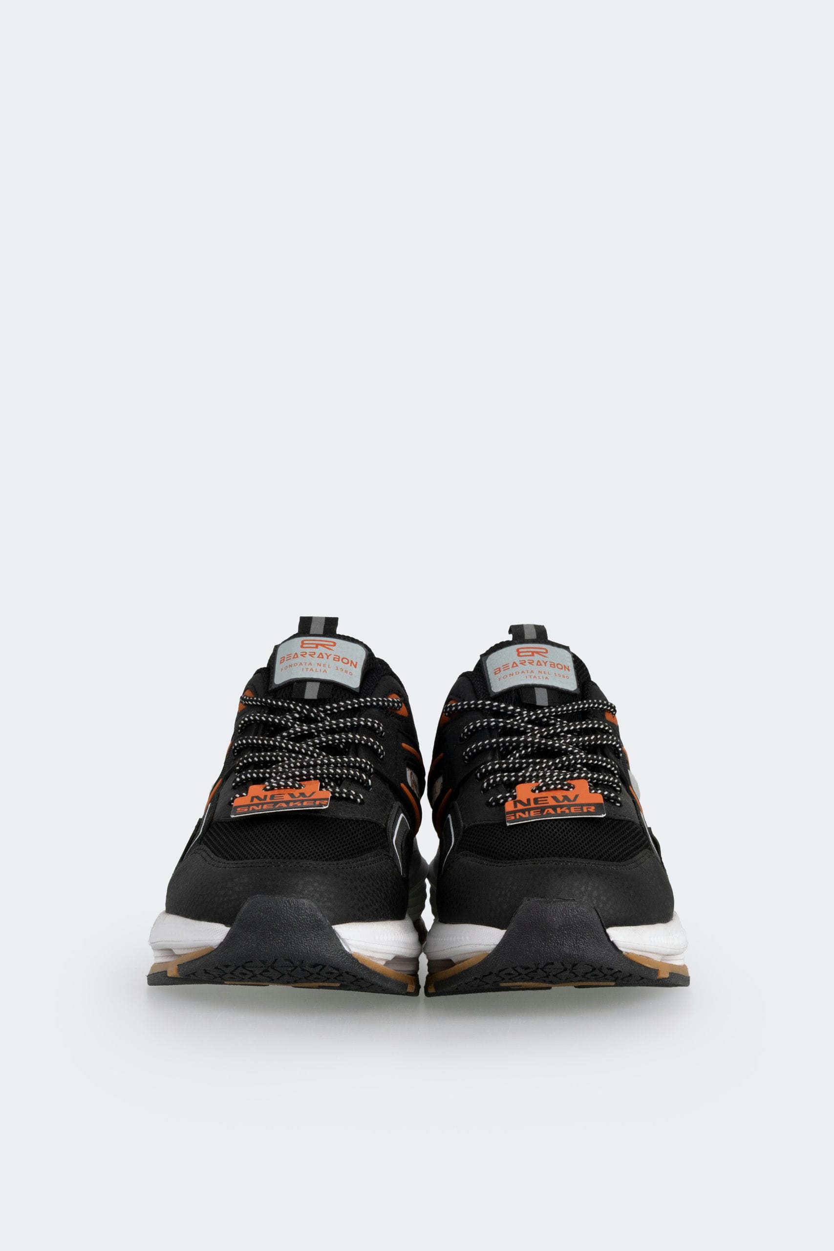 Crafted for the restless spirit, the Berraybon white leather Sneaker captures the pulse of the modern city. A harmony of black mesh and amber accents reflects strength in motion — elegant yet unyielding. Every stitch, every contour, speaks of precision and purpose. Effortless comfort meets timeless design, echoing the quiet confidence of those who move with intent.