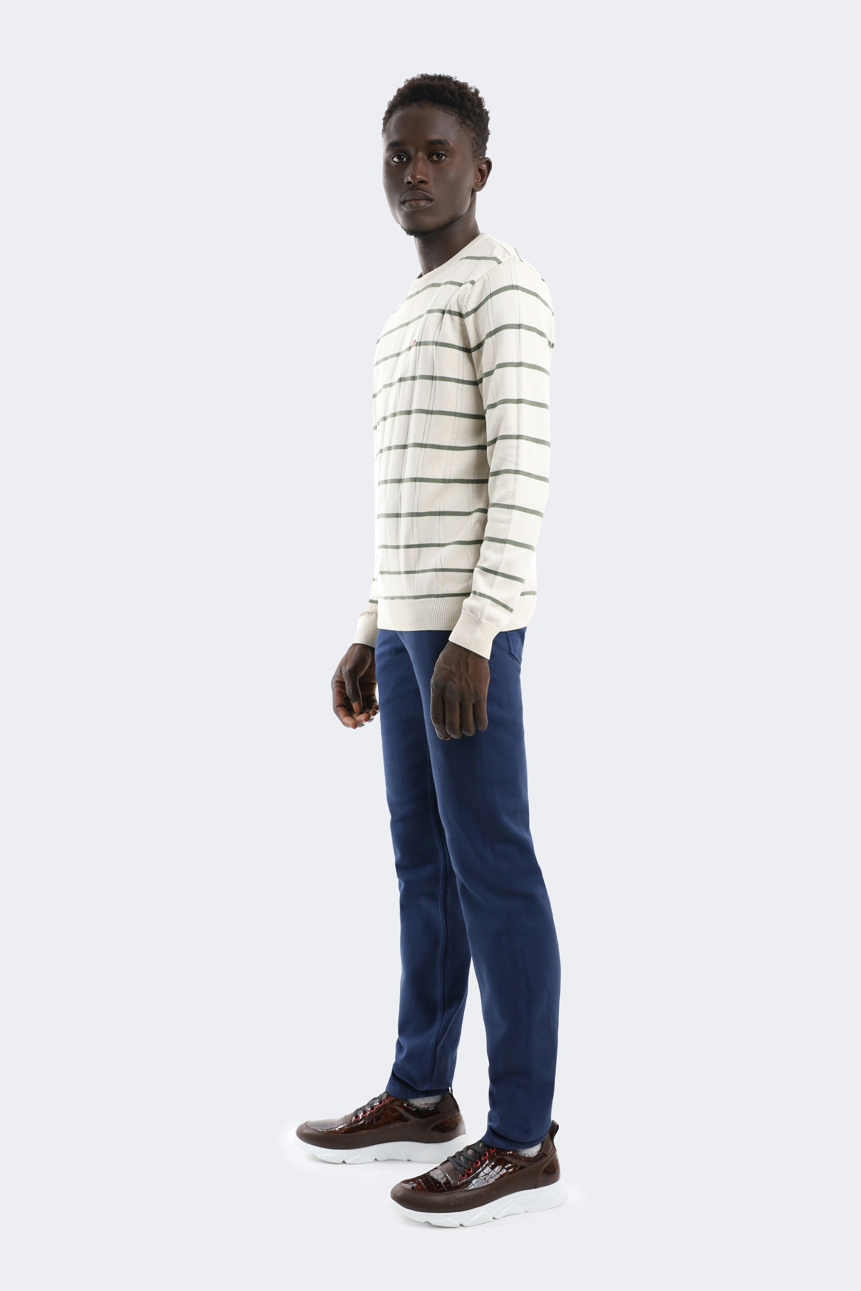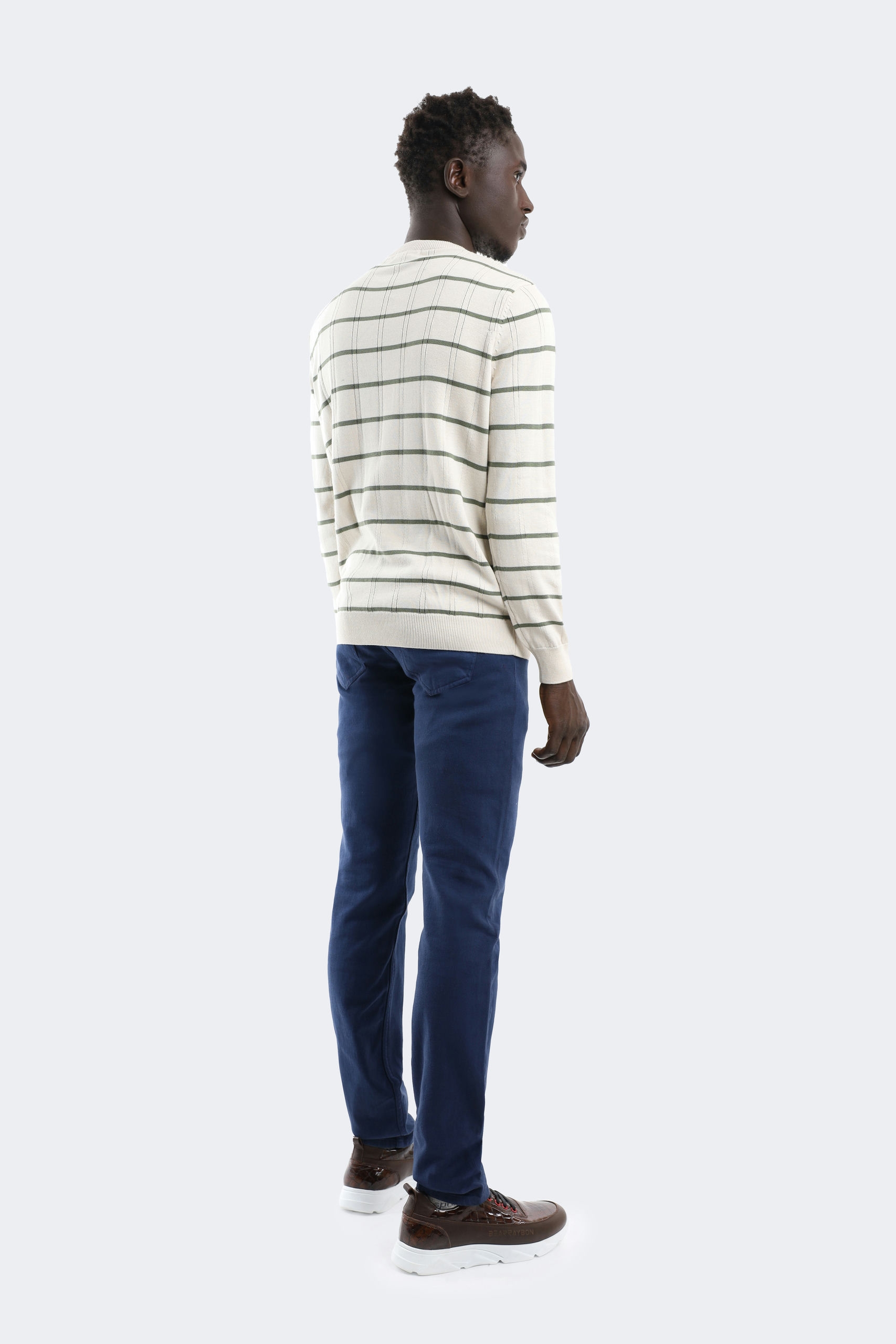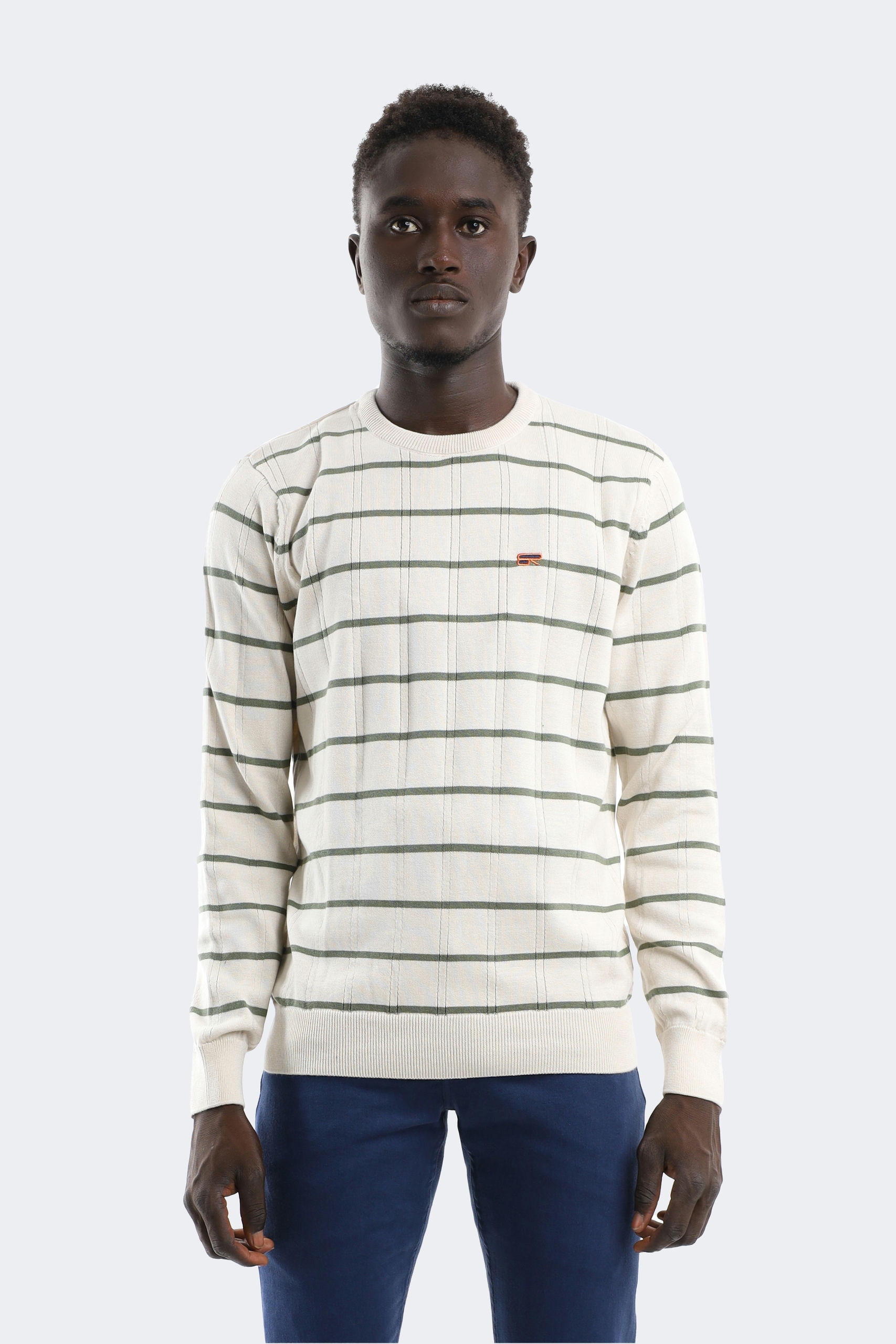 This long-sleeved sweater is characterized by its sophisticated design and timeless lines. The horizontal green stripes on a beige background create the perfect balance while emphasizing understated elegance. The finely crafted and carefully placed logo details are an elegant expression of luxury. Ideal for everyday wear and special occasions, this sweater will be an indispensable part of your modern wardrobe.