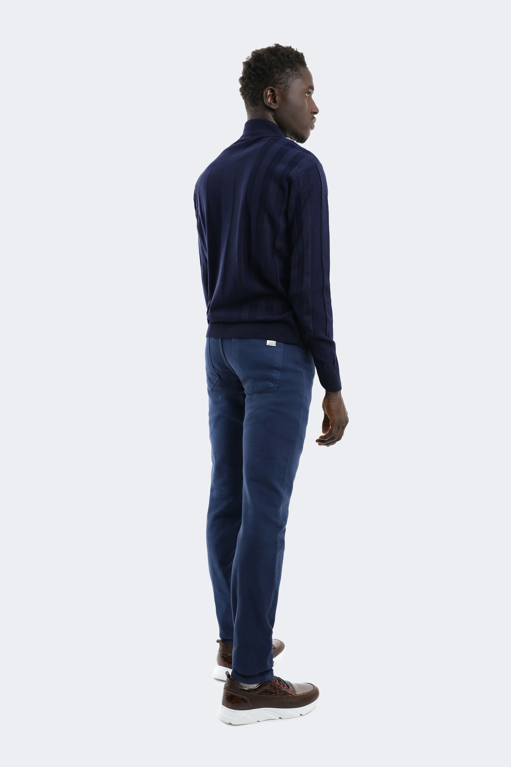 This high-neck sweater combines classic lines with a modern design. Creating a slim and long silhouette with its vertical patterns, this sweater offers both elegance and comfort at the same time. The small logo detail on it adds an elegant touch to its minimal design, while the soft fabric keeps you warm on cold days. Pairing perfectly with jeans or classic trousers, this piece is a candidate to be indispensable for both your daily and business outfits.